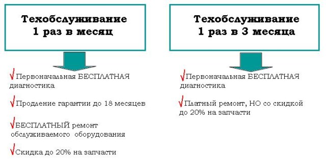 Если Вы хотите, чтобы Ваше холодильное оборудование прослужило как можно дольше, необходимо своевременно проводить его комплексное техническое обслуживание, которое поможет выявить все неполадки и неточности в работе. Данная процедура поможет Вам сэкономить на дорогостоящем ремонте, так как серьезные поломки происходят при длительной эксплуатации неисправного агрегата.